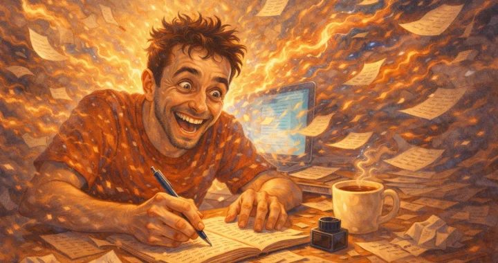 Mi-2025, un épisode hypomaniaque s’est déclenché. Il s’est rapidement transformé en épisode maniaque complet. Le premier signe, qui est passé inaperçu : une compulsion à écrire. La manie n’a pas généré la créativité. Elle l’a amplifiée. Elle a généré un besoin insoutenable d’écrire en continu, jusqu’à en oublier de dormir. J’écrivais des dizaines de pages chaque jour. J’essayais parfois de me reposer, avant d’ouvrir grands les yeux et d’ouvrir mon laptop pour me délester de nouvelles idées littéraires.