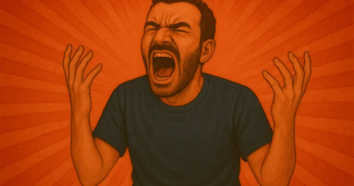 Illustration d'un homme sur fond rouge. Il crie, comme en alerte, il est en meltdown